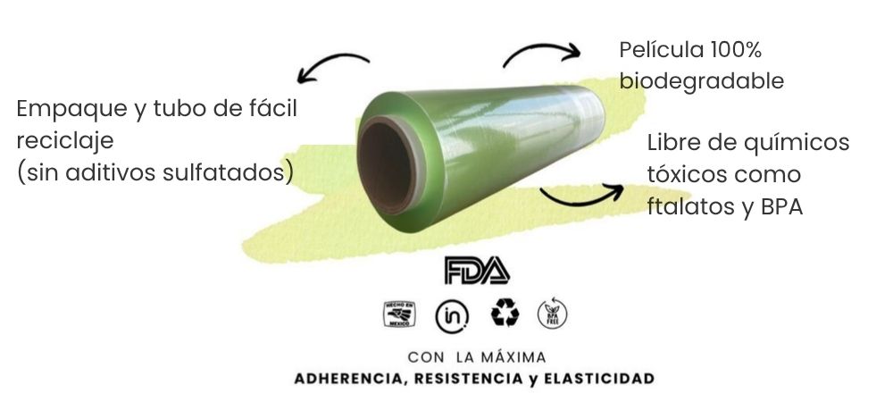 Nuestra película plástica 100% biodegradable, es una opción amigable para el medio ambiente y tus alimentos.